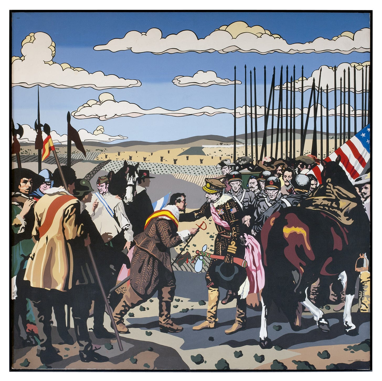 Lo que hacía el Equipo Crónica era usar el lenguaje visual del Pop Art para hablar de la España a la que ya le apretaba demasiado la camisa franquista. Arte con compromiso político, con ironía, con crítica social. Desde 1965, el colectivo, formado exclusivamente por Valdés y Solbes tras la salida de Toledo, participó en numerosas exposiciones adquiriendo una notoriedad que fue más allá de las fronteras de España.